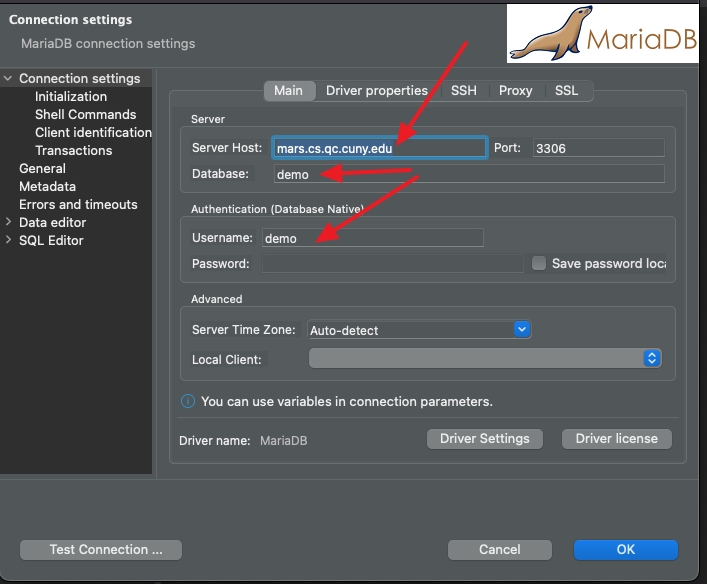 Enter mars.cs.qc.cuny.edu in the box labeled Server Host: